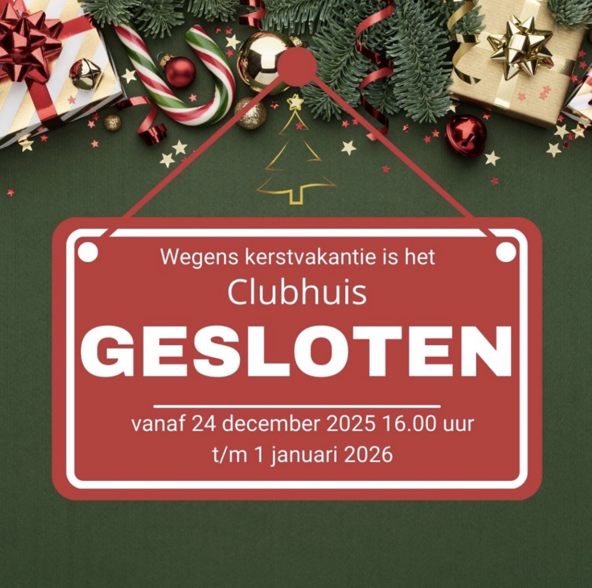 Clubhuis gesloten tijdens kerstvakantie - Horeca Padel beperkt open